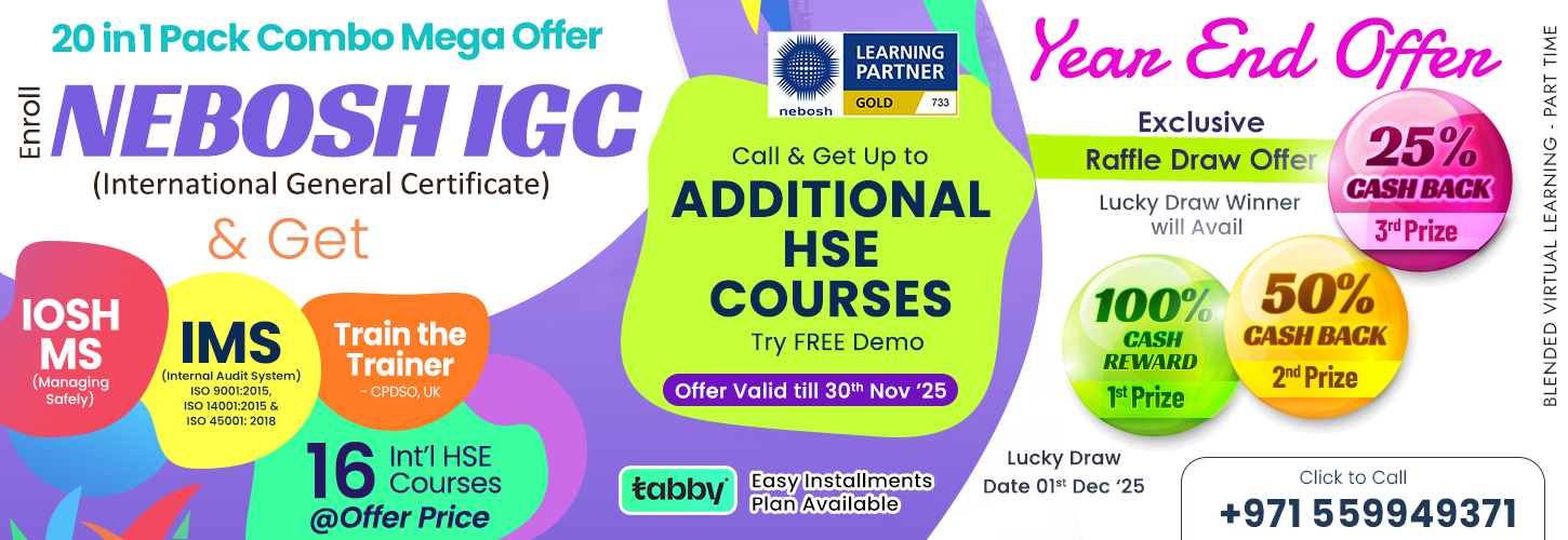 Taking up the NEBOSH Training in Fujairah can help the candidate to grab an excellent HSE career in private and public industrial sectors. On successful completion of this certification, candidates are eligible to apply for the memberships in IOSH & IIRSM.