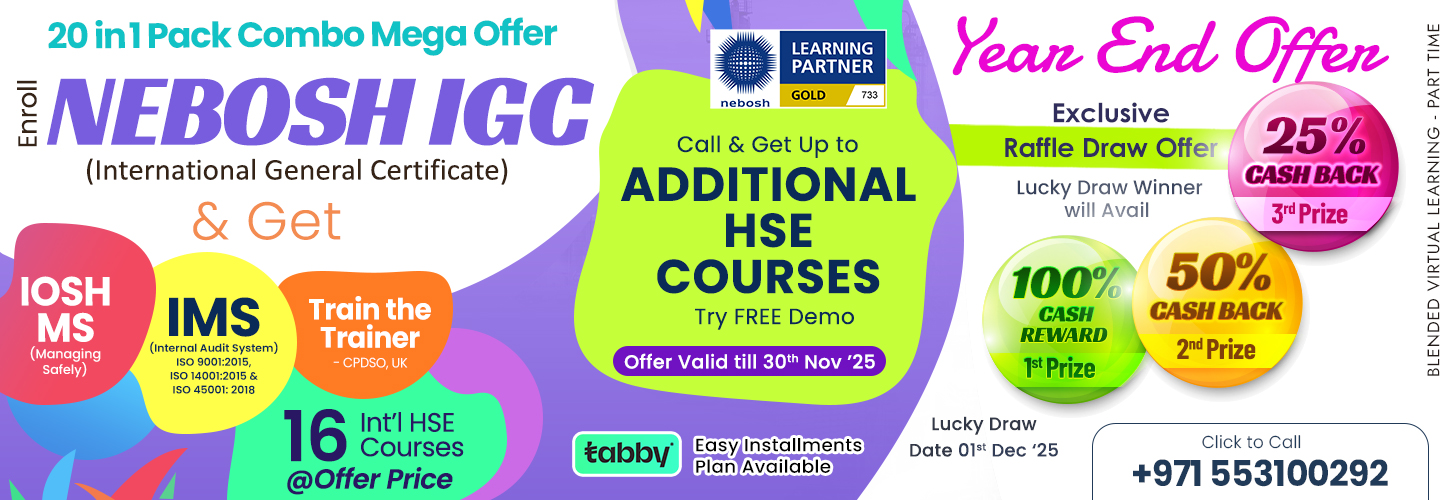 The NEBOSH Course in Abu Dhabi aims to equip learners with a set of skills and application knowledge in a structured manner, enabling them to establish/improve strong health and safety procedures and standards within their organizations.