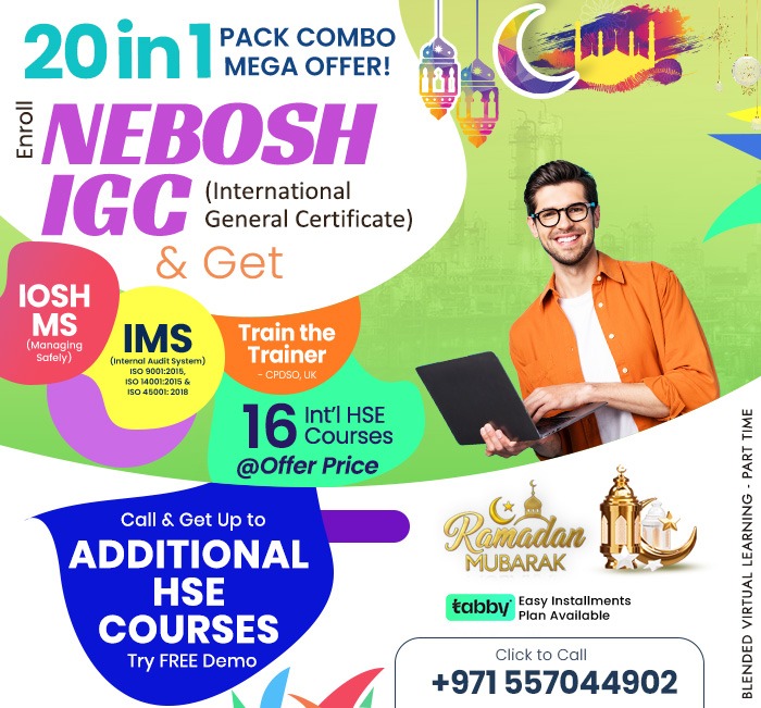 Green World delivers the NEBOSH IGC in United Arab Emirates via virtual/live online training on regular evening (2 – 2.5 hrs./session) and weekend Friday classes (up to 6 hrs./session) where learners can choose their desired training session depends on their choice.