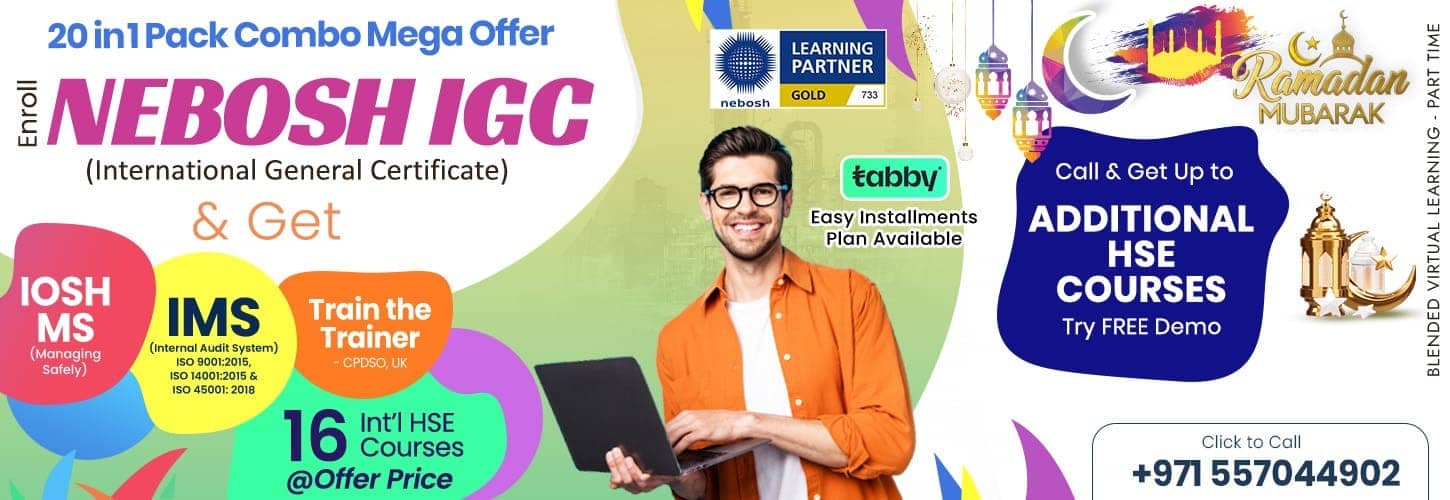 Green World delivers the NEBOSH IGC in United Arab Emirates via virtual/live online training on regular evening (2 – 2.5 hrs./session) and weekend Friday classes (up to 6 hrs./session) where learners can choose their desired training session depends on their choice.